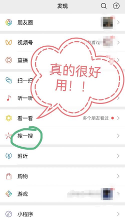 点击选择启用,就能在“发现”页面看到这个功能。点击“搜一搜”,就能指定搜索朋友圈、文章、公众号、小说、音乐、表情。通过“看一看”,你可以发现好友关注的热点以及你感兴趣的内容。