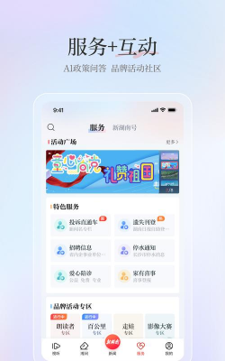 -移动新政务,产品多形态。湖南省政府办事指南、湖南民政便民服务入驻新湖南。寻亲救助、婚姻预约登记、长沙停水消息……新湖南为湖南本土用户提供最便捷的政务办事服务,一站式的“移动政务办事大厅”,让用户足不出户,手机快捷办理。地名查询、“民众办事200问”也将陆续上线。新湖南产品形态多样,湖南地市州新闻LBS自动地位,在常规的焦点图、列表新闻基础上,还有图集、大图、视频等多种格式呈现新闻。