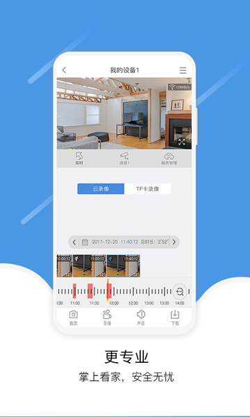 界面风格简洁时尚,多种画面预览形式、实时预览视频流、QR码扫描、云台控制、视频抓拍、录像保存...更多功能,等你来发现,赶快来下载吧!