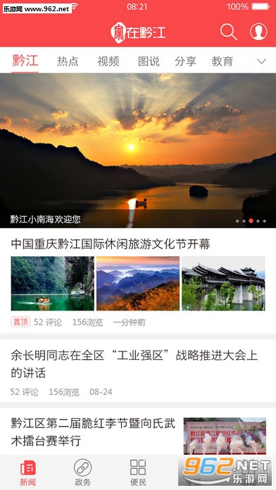 《家在黔江ios版》这是一款本地类的资讯服务客户端。由重庆市黔江区打造,市民可以通过这款APP浏览本地的头条新闻、社会动态、政务信息等,以及享受预约挂号、水电缴费、公交查询、违章查询等超多便利的生活娱乐服务。