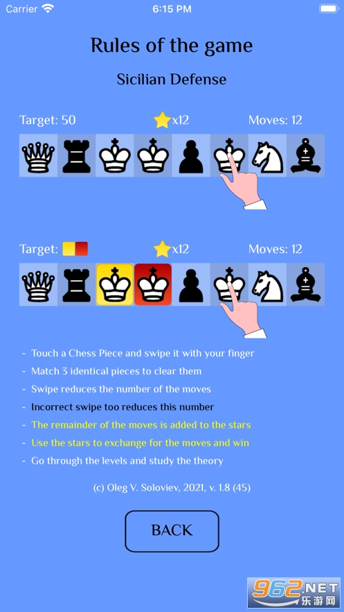 在国际象棋中,注意力和集中力是非常重要的,即快速定位和做出正确决定的能力,特别是在时间有限的情况下。游戏允许你通过一个看似简单的形状匹配来发展这些技能,但它是有效的!而且,在这个游戏中,你可以探索所有的西西里岛的防守变化只是玩。完成等级和解锁新的防御选项!
