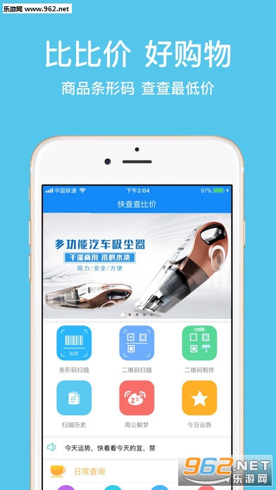 《快查查比价苹果版》是一款为朋友们打造的条形码扫描器,很多的物品上都有着一个条形码,我们扫这个条形码是可以知道很多有关这个物品的消息的,如价格、产地、用途等,使用本款软件可以快速扫描,查找相关信息。