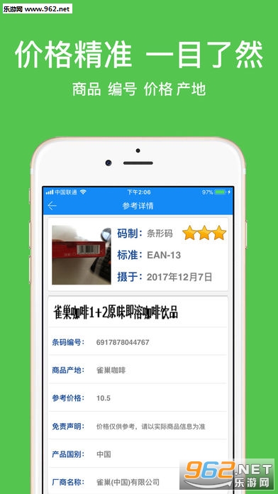 扫描商品,书籍,杂志的条码, 为您展示不同展示效果, 您不仅可以看到名称, 产地, 规格, 价格等, 还可以查看各大网店, 超市的价格, 并进行比价查询.