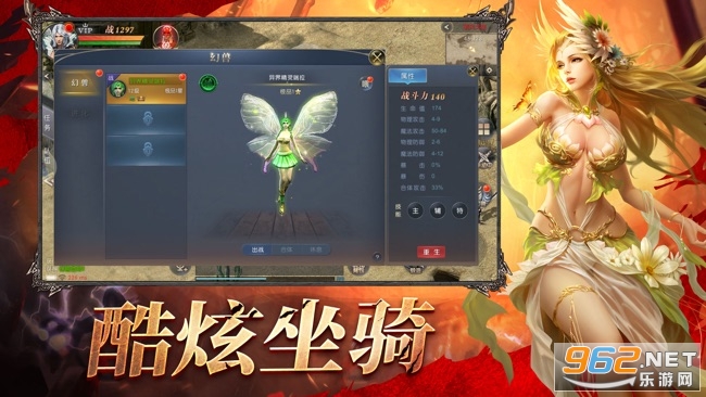 3、五大经典职业角色,鲲鹏,白泽,鲲多种神兽坐骑,后期还可进行角色巅峰转变。