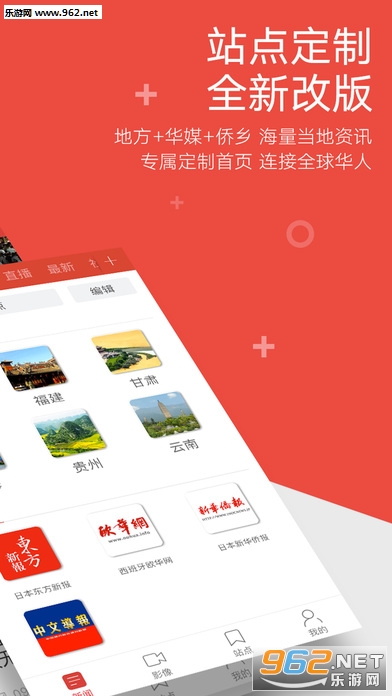 站点定制:整合地方、侨乡频道,聚合海内外华文媒体优质内容,一键定制属于你的专属首页,连接全球华人。