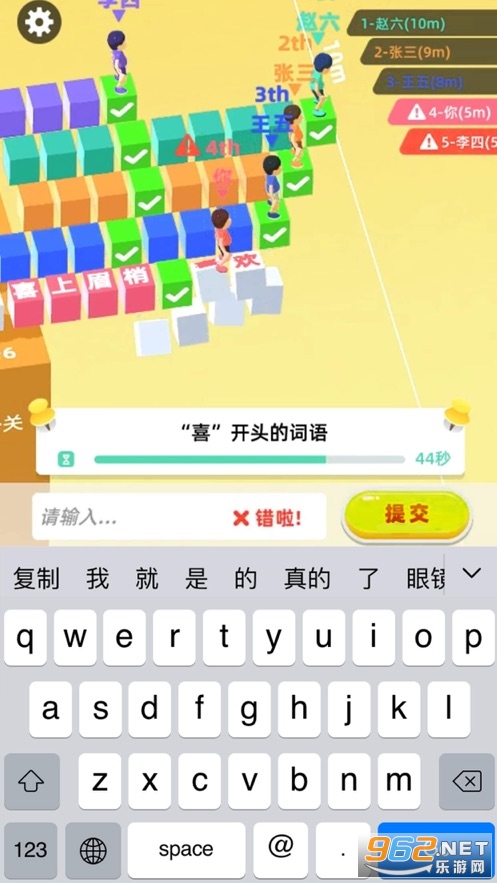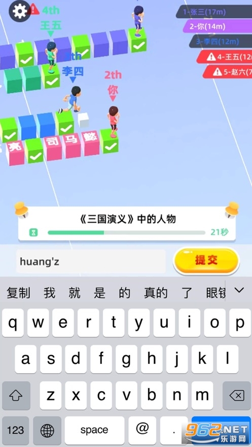 3、多人竞技玩法,打字的速度慢,或者出错,这一题的机会会被其他人抢。