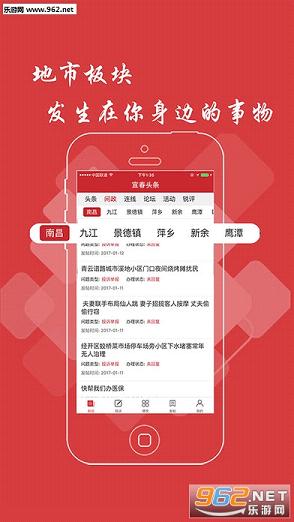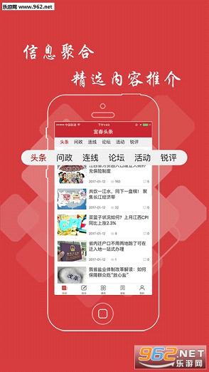 宜春头条APP,是基于大数据统计汇集地方性新闻内容,包括头条、问政、连线、论坛等几个频道,里面的资讯实时更新,并能根据用户社交行为、阅读行为、地理位置、职业、年龄等挖掘出兴趣并推送对口新闻资讯。