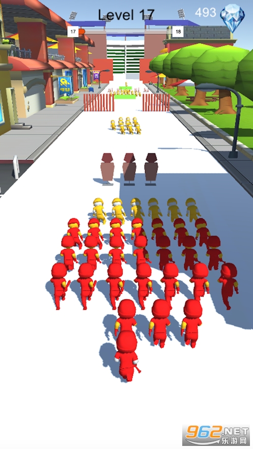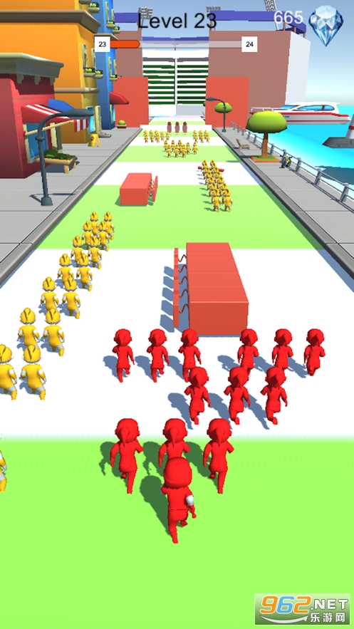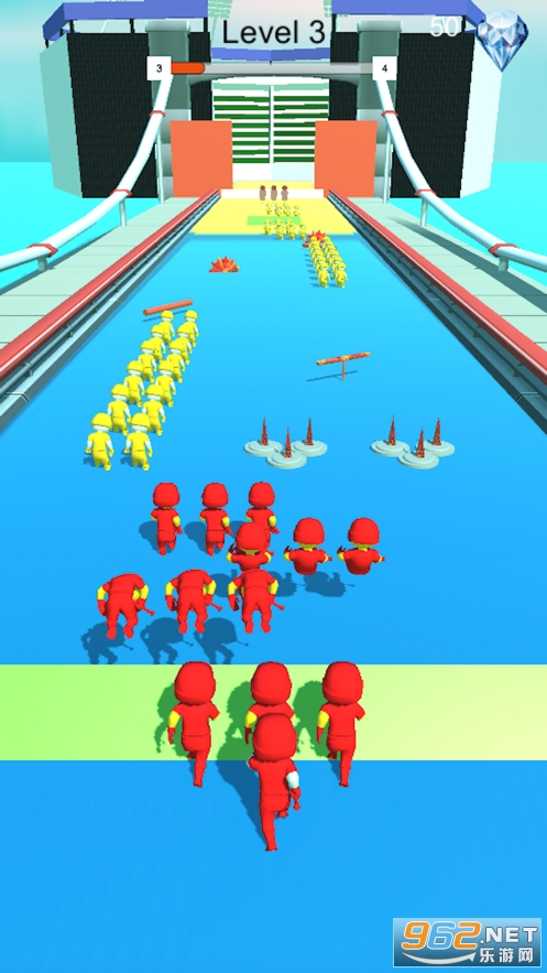 《坠落人群官方版》是一款有趣的敏捷闯关冒险游戏,游戏中玩家控制你的小人向前奔跑,在奔跑的过程中小人可以将其他颜色的小人收编到你的队伍里,壮大你的队伍,敏捷的躲避路上的机关障碍,队伍的人数越多越能抵抗危险,你能过去的关卡就越多。
