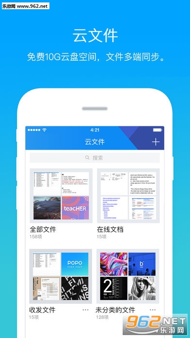 云文件:提供10G的免费云文件,可以长期存储聊天过程中的收发文件,并进行文件管理。