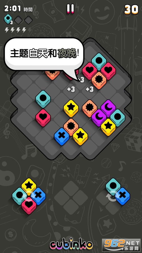 3、所有的元素都是分布在不同的几何平面,感受具有创意的三消玩法。