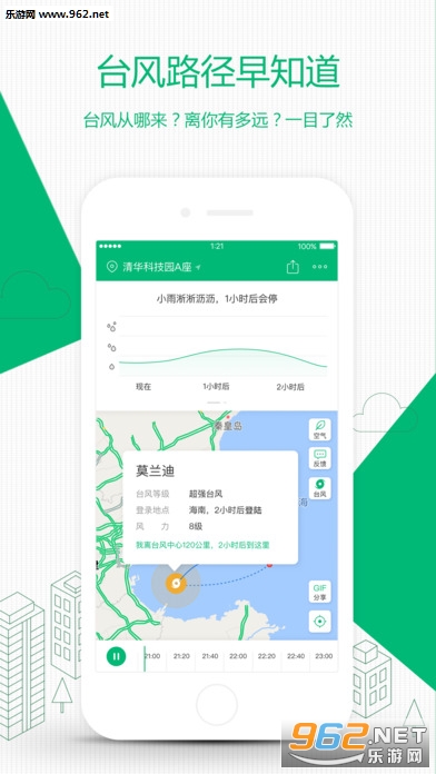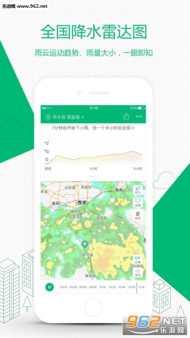 彩云天气可以在手机地图上流畅显示整个城市的降雨量动画,帮助您直观看到当前地区的降雨量变化。通过彩云天气,你可以直观看到风暴的路径,自己预测未来降雨的情况。