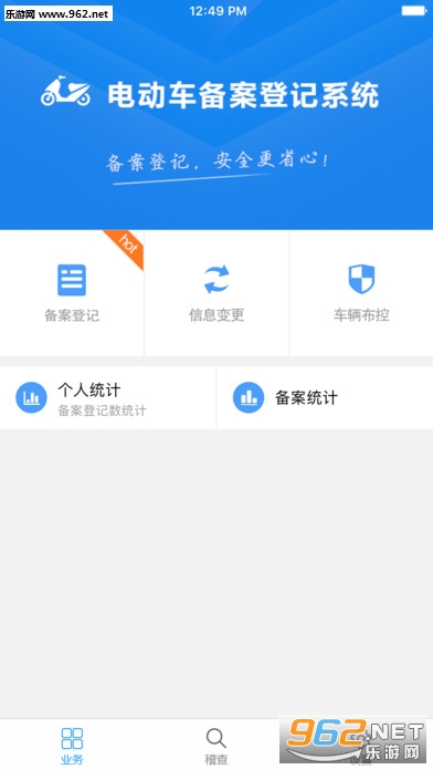 “电动车备案登记系统”是一款专为二轮电动车打造的智能应用及服务软件。软件包含“备案登记”、“信息变更”、“备案统计”、“个人统计”、“信息查询”、“车辆布控”、“车辆稽查”等功能,更全面!