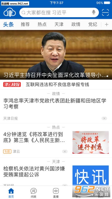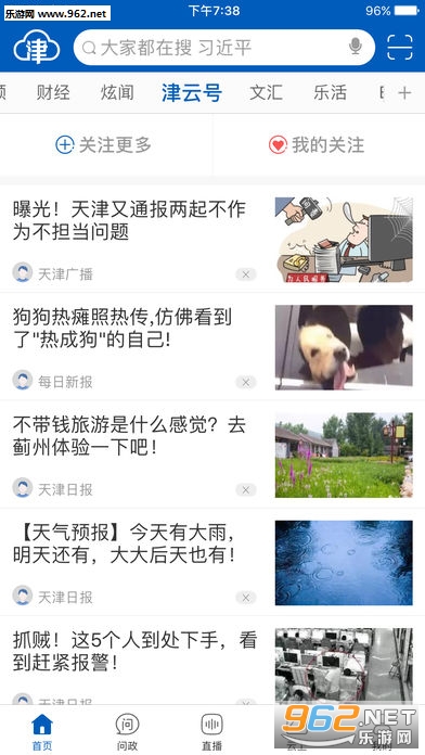设置“推荐”、“政情”、“京津冀”、“文汇”等30个栏目,汇聚来自报纸、电视、广播、网站、新闻客户端以及优质自媒体的内容,包括微视频、VR视频、无人机视频、H5、动新闻、读图新闻等多种创新产品。通过精准的“用户画像”,为用户自动推荐感兴趣的文章。此外,全市各级政府部门、高校等开设的近1900个、账号入驻“津云号”,全天候提供各种资讯。