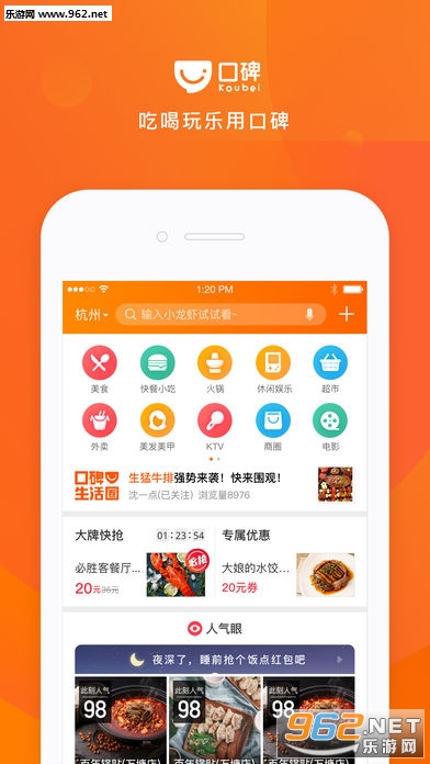 《支付宝口碑App苹果版》是一款功能强大的吃喝玩乐专业app,用户在上面可以直接预订附近的美食外卖,购买电影票,养生足疗,KTV、酒店等等,功能非常的全面,让你不出门就可以享受任何生活服务,喜欢的用户快来下载吧!