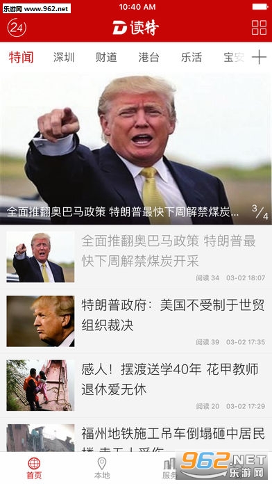 读特新闻客户端是深圳市委市政府主管主办的深圳特区报倾力打造的一款新闻类APP,它在内容设置全部体现特区区域特色,具有特闻、深圳、财道、港台、乐活和视听等频道。
