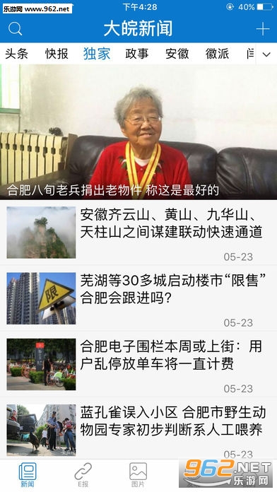 2.在“大皖”客户端首页面下方打开“E 报”就能阅读“新 e报”,同时还可快速阅读“大皖”客户端为您精心打造的“快报”、“独家”、“徽派”、“闫红说”等精彩栏目。