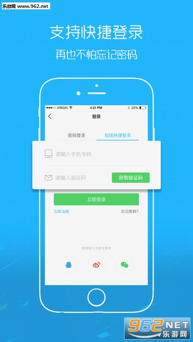 6、【快捷登录】支持短信快捷登录,再也不怕忘记登录密码