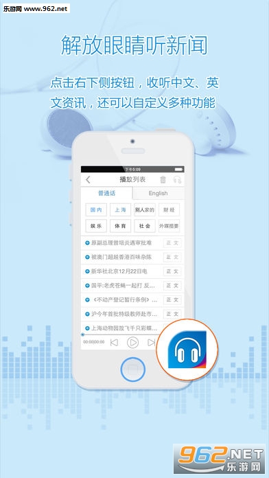 点击右下侧按钮,收听中文、英文资讯,还可以自定义多种功能