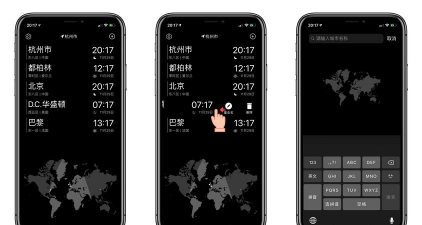 1、晓时app可以通过左滑手势改变时区的命名,以方便用户在查看时区的时候更加直观,点击右上角的加号可以添加新的城市;