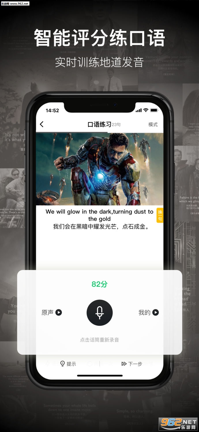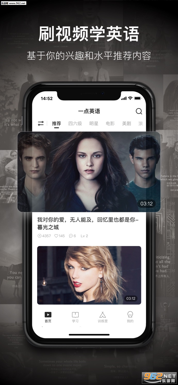 影视原声跟读,AI系统进行评分,实时反馈学习效果,练就一口地道口语。视频互动区支持语音评论,提供口语交流平台。