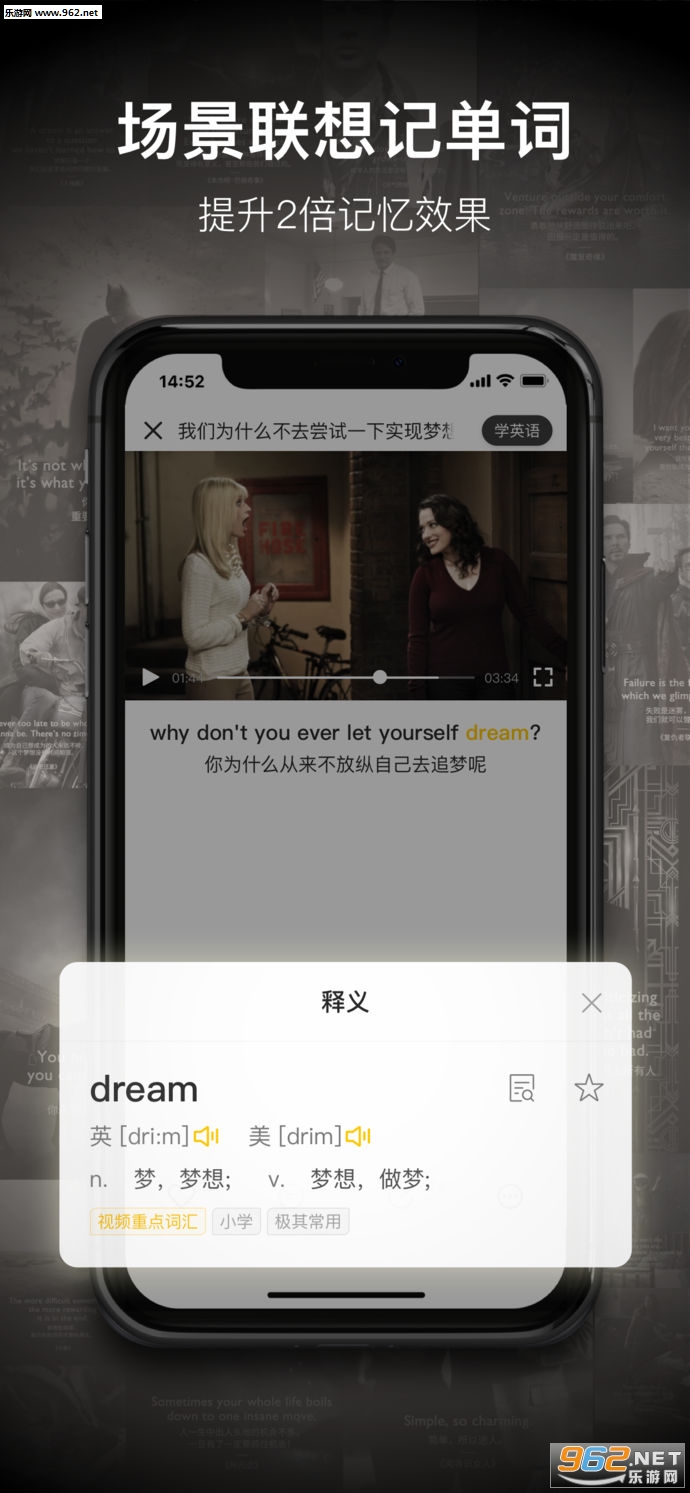 学生白领必备的网红英语学习App,整合全网超有意思的英文原声视频,将各类英美剧电影、公开课等海量视频打造成个性化学习材料。