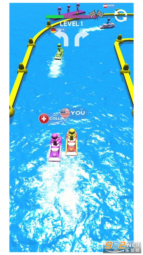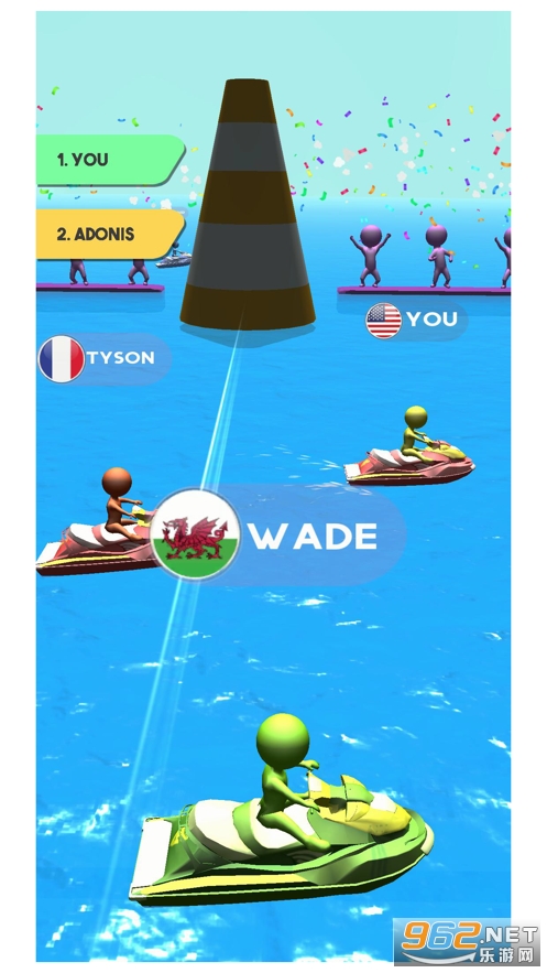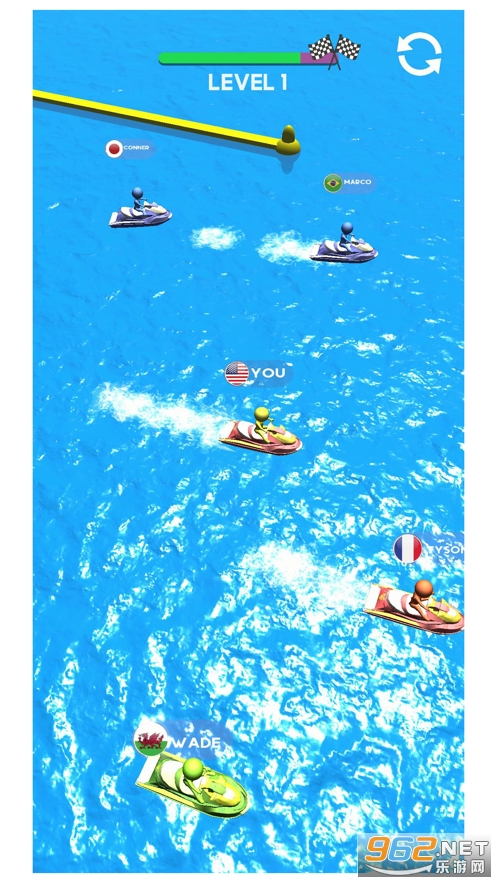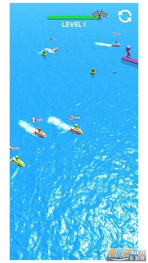 一款水上摩托竞速游戏,多个玩家可以一起参与进来,驾驶着水上摩托艇,在指定的赛道上进行比赛。非常符合炎炎夏日畅玩的游戏,简单的操作,但是需要你有足够的反应,及时的控制转弯,争取第一个到达终点吧。卡通的橡皮人画风,简单上手的休闲玩法,让所有的小伙伴都可以好好的放松一夏。