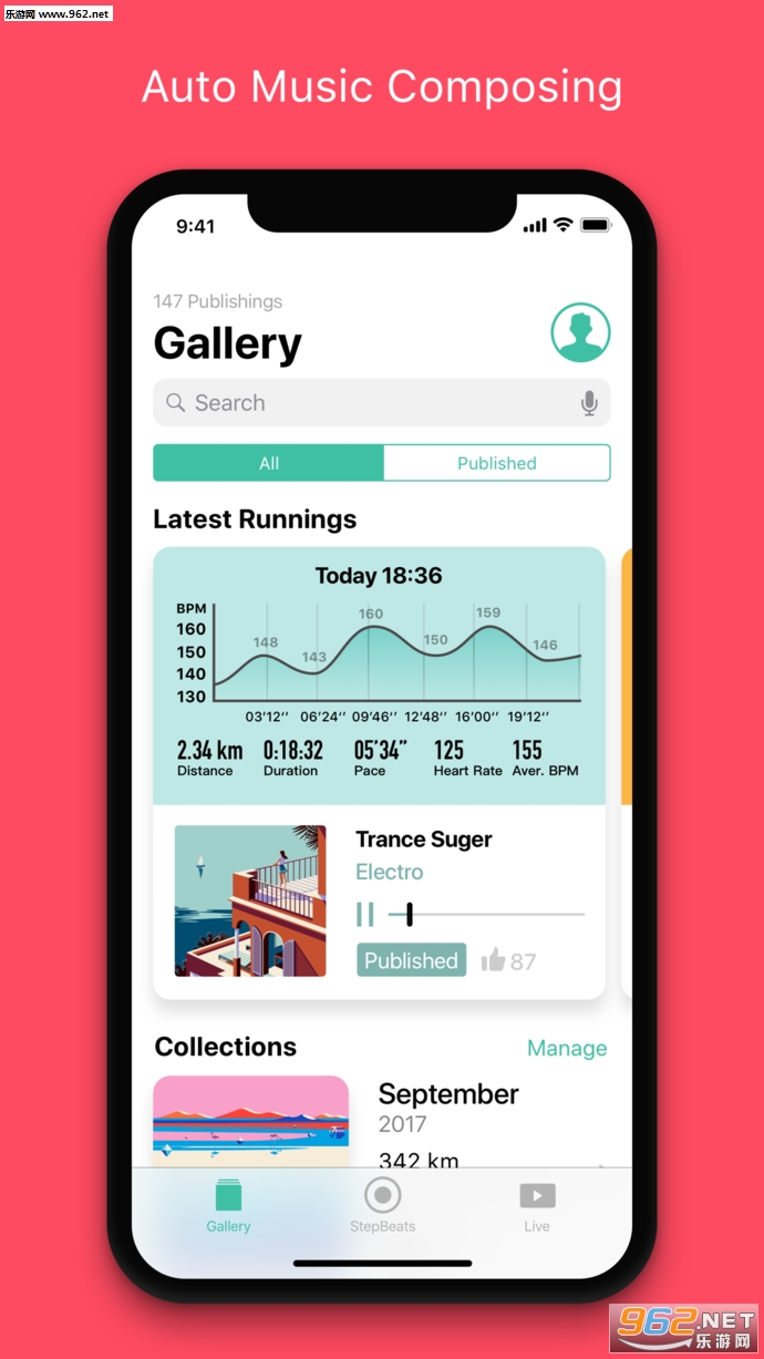 1、StepBeats app通过充满个性的跑步特征、不断变化的跑步速度和步频来创作、分享独属于自己的音乐;