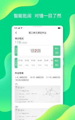 学生可在小七学伴APP中查看自己的详细得分,及老师发布的标准答案与解析,帮助学生准确定位答题失分点,课下及时查漏补缺。