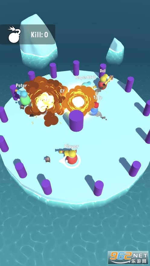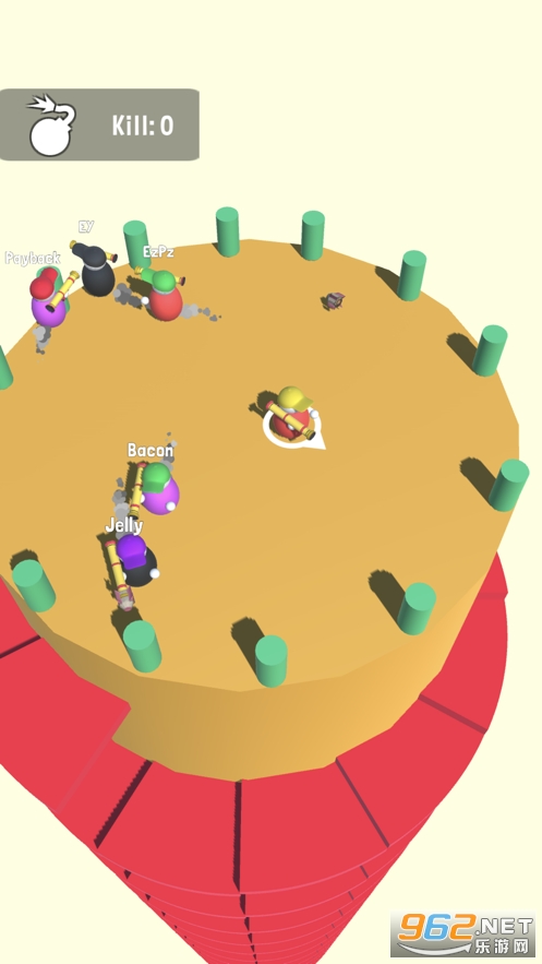 一款很有趣的大乱斗竞技游戏,想办法讲其他的家伙全部推下去吧,在这个平台上最终存活的玩家获得游戏胜利。你可以很好的利用一些地形,不要被其他人给包围了,并不需要你去推倒所有人,你也可以选择坐山观虎斗。