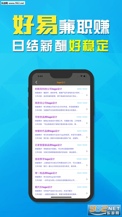 《好易兼职赚app》是一款找兼职工作敌人廉,职业分类很明确,涵盖了所有分类的职位搜索,薪资一目了然,提供日结、周结,让你工作完成就可以获得自己的报酬,喜欢的来下载吧。