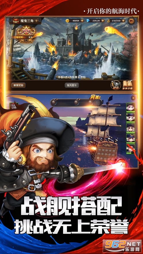 3、特色海战:深度还原中世纪海战场面,从培养船员、获得战船、强化战舰、组建船队,直到正式出击、疯狂掠夺,带你完整体验海盗生涯的始末。