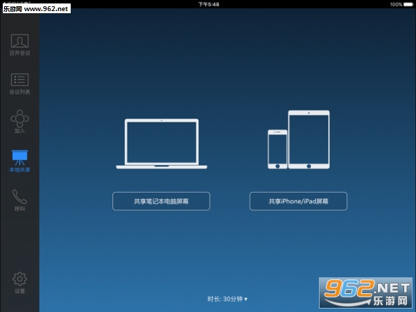简单地点击一下iPad,就可以开始共享文件的会议或者视频会议