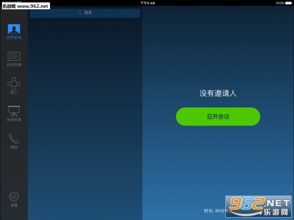 在iPad上安装了瞩目会议室App后,在同一网络下,登录并连接到在瞩目盒子上运行的瞩目会议室,点击“开会”按钮,你就拥有了能够容纳200人的瞩目会议室,一切就是如此简单。