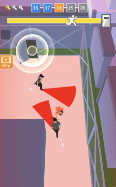 总体来说是一款十分有趣的休闲闯关游戏,游戏的画面十分的可爱,操作的玩法也十分的不错,简单的滑动手指即可,当然注意躲避路上的障碍物以及敌人的探索区域,看似简单其实考验玩家们的手指点击操作,喜欢的亲们赶紧下载吧。