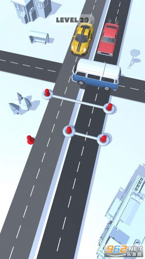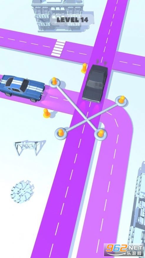 《绳索交通游戏》是一款用绳子移动路上汽车的游戏,这里有很多的汽车堵在路上了,造成了交通的混乱,玩家需要用绳子拉把每一辆汽车都清理移动掉,让交通得以恢复顺畅的通行,也可以利用绳子来仙阻挡一部分车流的到来,实现分流的效果,总之就是用绳子来推汽车。