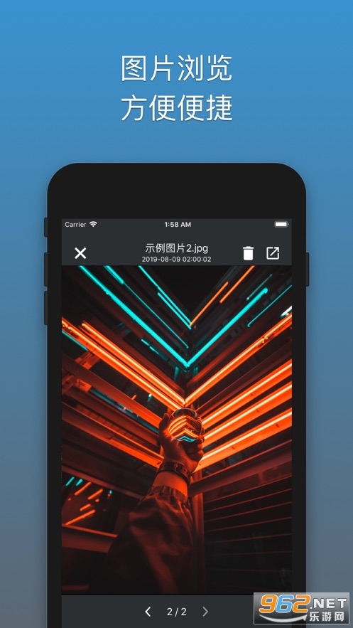 3.图片浏览方便便捷,看图片的方式更轻松,一键分享图片文件到其他地方,浏览更轻松;