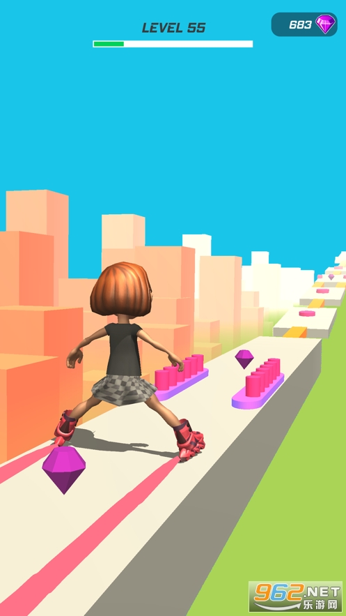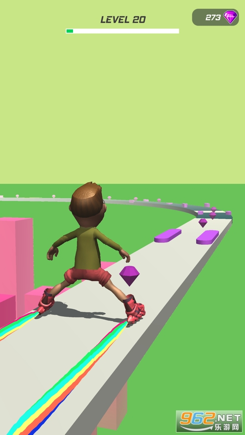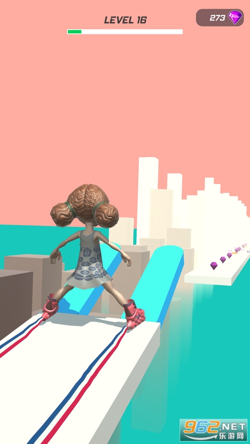 《空中轮滑冲浪官方版》是一款有趣的跑酷敏捷闯关游戏,游戏中玩家的角色会穿着轮滑鞋在空中轨道上滑行,轨道上会有很多的障碍物,你要通过劈叉或者是并腿的方式来躲避这些障碍物,还要收集轨道上的钻石,坚持到终点就是胜利。