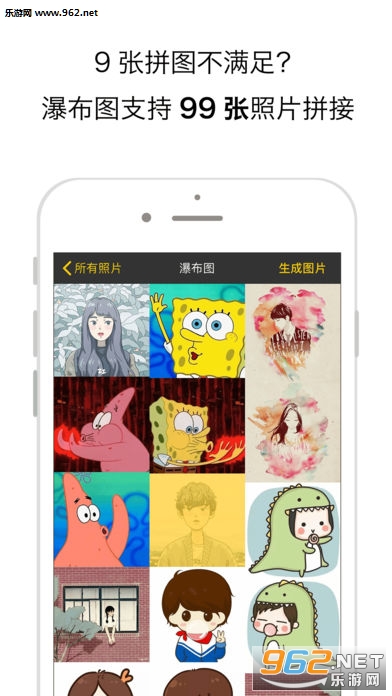 2.瀑布图。忘记只能拼9张图的烦恼,瀑布图可以拼99张图片,让你的分享信息爆炸。
