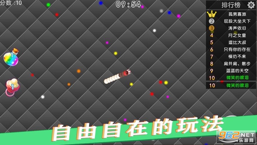 10分激萌可爱的休闲一只冒险生存的手机游戏。在这里有着非常庞大的社交系统,能够在这里遇到很多玩家与你一起体验,最多只是100个玩家在整个的场地之中进行成长。往下开就可以选择一个非常可爱的毛毛虫。不同的颜色以及品种将会带来特色的炫光效果。游戏开始将会有这10分钟的倒计时。在时间结束的时候,谁的体积更大,所以就是最终的胜利者。