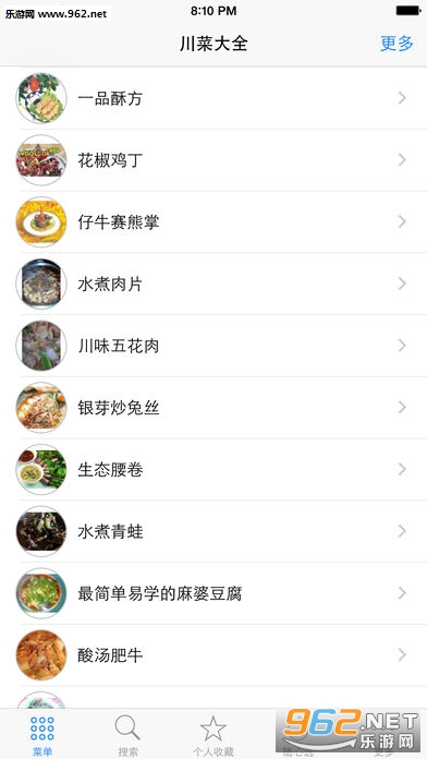 《川菜辣味菜谱大全苹果版》是一款为朋友们打造的学做菜的软件,软件中有着众多的川菜菜谱,每道菜都有着详细的视频讲解,朋友们可以在软件中学习各种川菜的做法,让你成为一个川菜大厨。