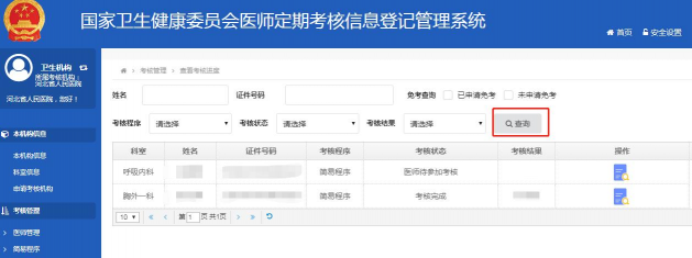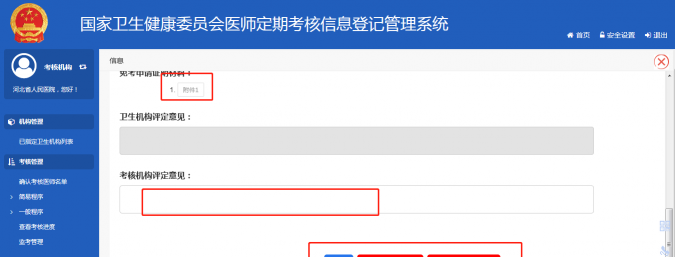 (二)工作成绩和职业道德考核。考核对象分别填写《医师定期考核表(一般程序)》《医师定期考核表(简易程序)》,提交至所在机构;所在机构在《医师定期考核表》上签署评定意见,报考核机构审核备案,并在电子化注册系统中录入相关信息。