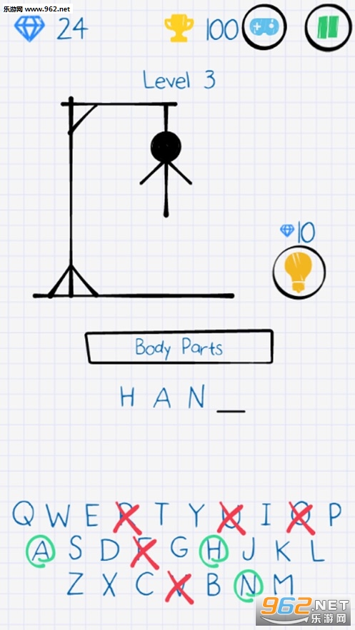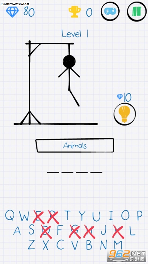 你必须猜出正确单词的26个字母。你最好是对了,否则火柴人会被绞死!