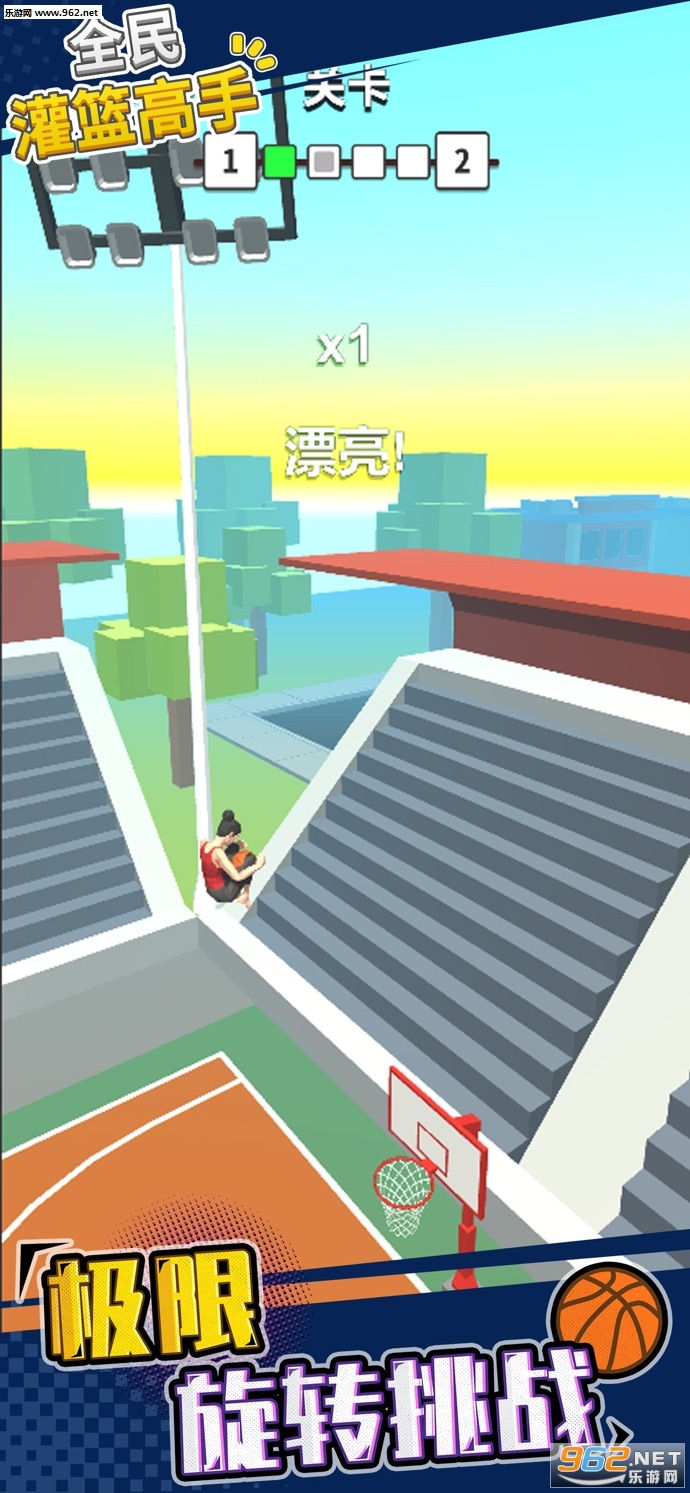 趣味的旋转游戏,玩家可以控制人物在控制旋转转体,转的越多得分越高,当然要保证将球扣入篮筐中,有着森林、街道等众多的场景,喜欢的朋友可以下载试试。
