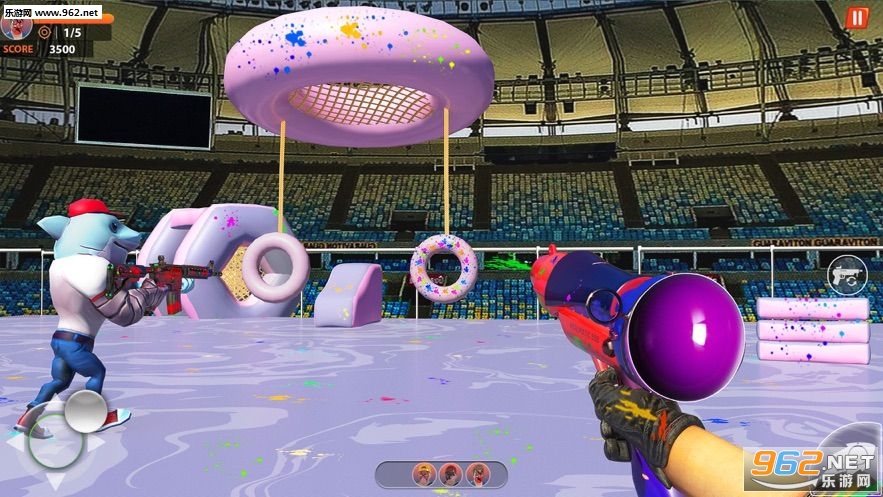 1、复杂清爽的3D图形设计,完美的打造了一个彩弹射击竞技场,在有限的时间内和多名枪手对决;