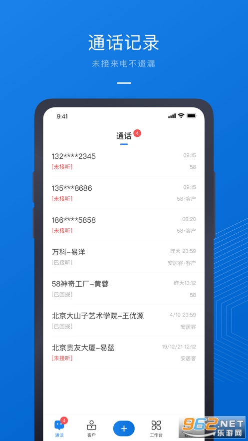 1.客户的通话记录实时更新,未接的来电也不会有遗漏的,实时推送;