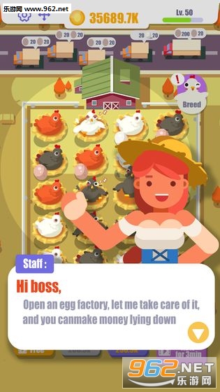 经典的放置玩法模式,建立属于自己的蛋工厂,然后不断的接受各种订单完成配送任务,成为一个专业的养鸡大亨;
