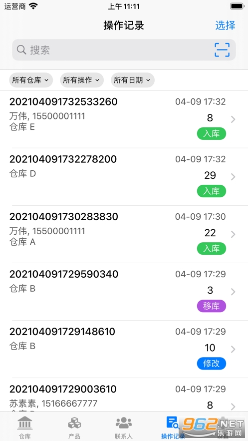 根据联系人、产品、仓库查询订单记录