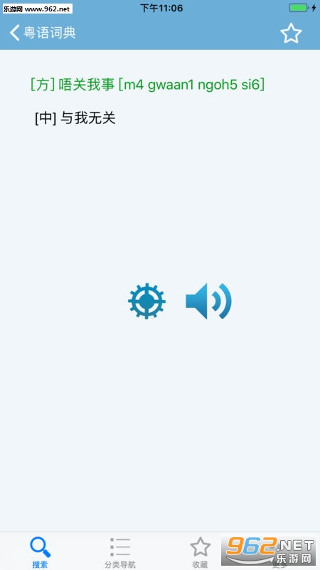 1、输入词语,软件会告诉你几十个该词语场景的粤语句子,并可以朗读出来。
