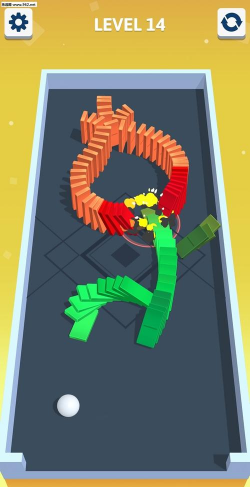 Rolling Domino游戏是一款趣味休闲游戏,游戏中玩家需要用一个小球将多米诺骨牌全部击倒,游戏操作起来十分的简单,玩家只需手指控制球球就可以完成挑战哦,超简单的操作让你轻松上手,但是游戏中想要一次就击中摧毁全部的骨牌是不太容易的哦。
