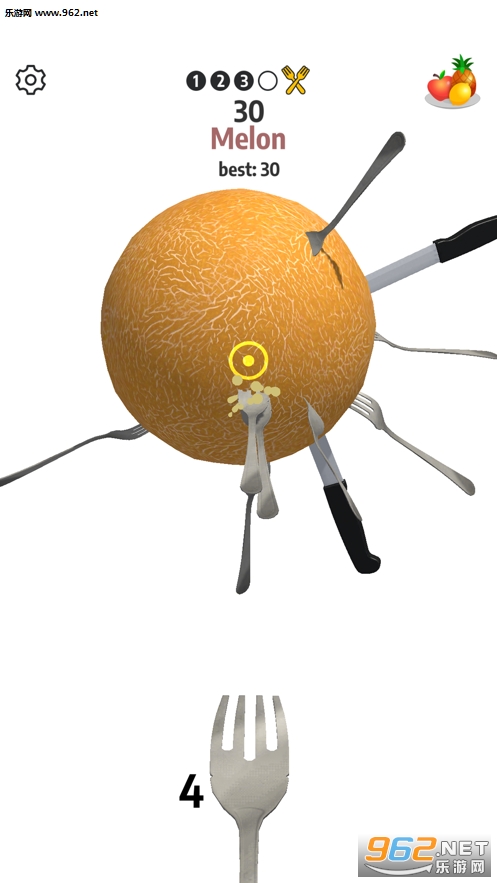 2、灵活的移动你的手指去进行射击,将叉子射到水果上即可;